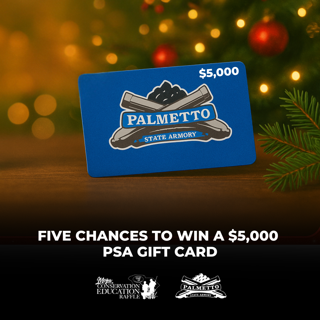 Five winners will receive a $5,000 Palmetto State Armory gift card allowing them to select up to $5,000 in merchandise from the Palmetto State Armory website or retail outlets. Sales tax and shipping are not included. Merchandise ordered is subject to availability.